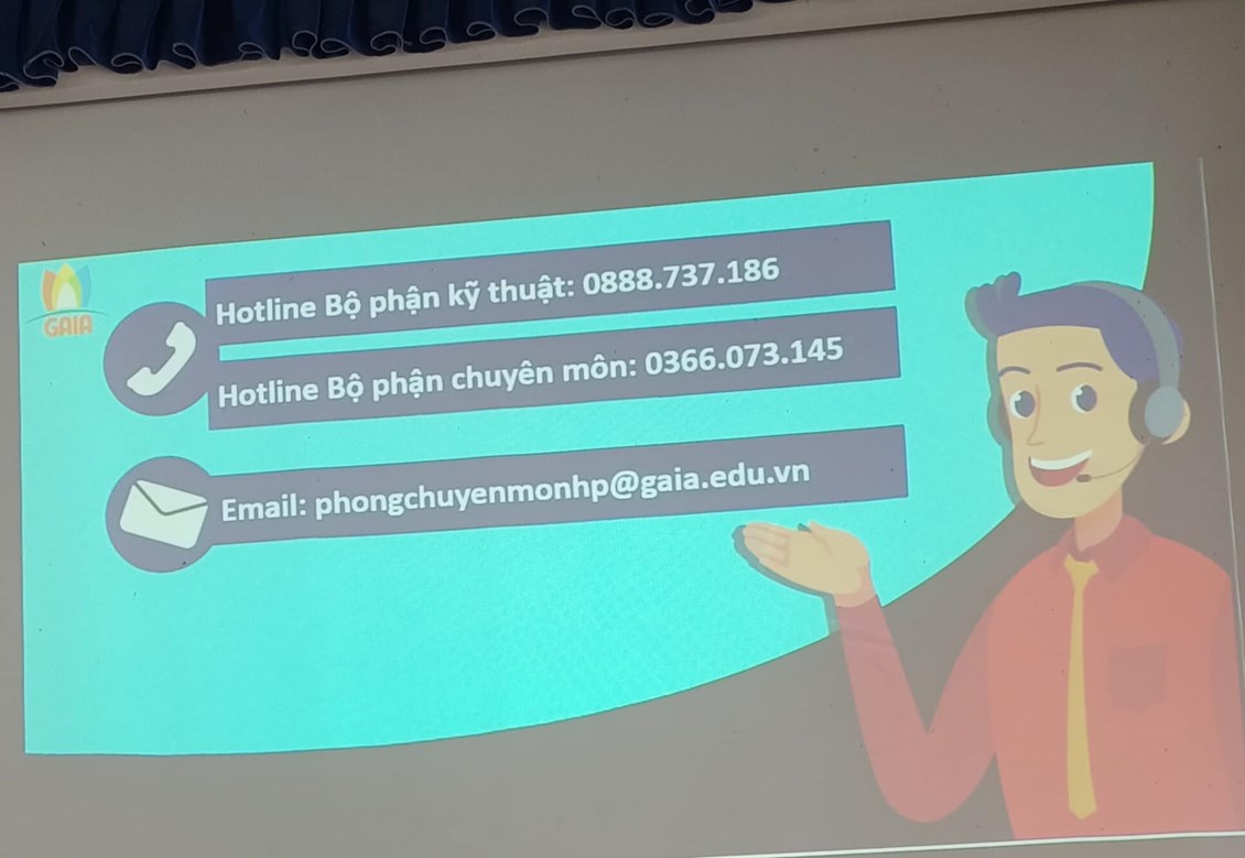 Sau tiết học demo, Công ty Gaia sẽ giải đáp các câu hỏi mà các thầy cô tham gia tập huấn đưa ra sau khi tham gia một tiết học và cài phần mềm trên toàn bộ máy tính cho các cán bộ giáo viên nhà trường.